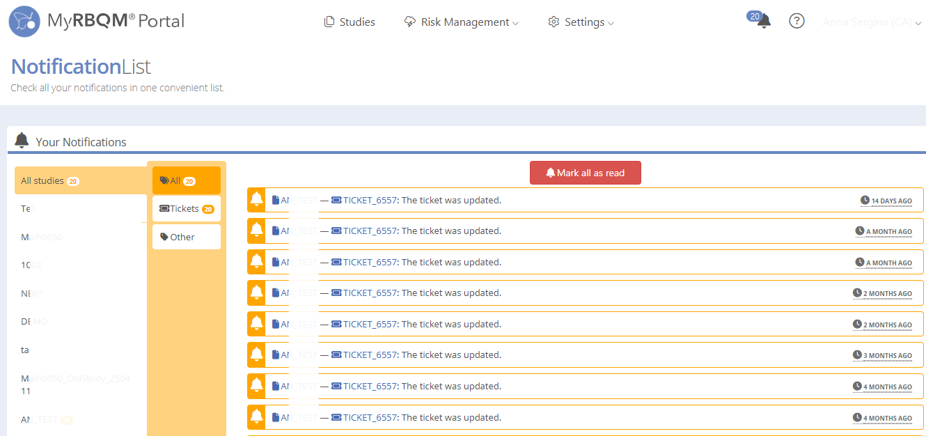 There are two types of Notifications in MyRBQM: