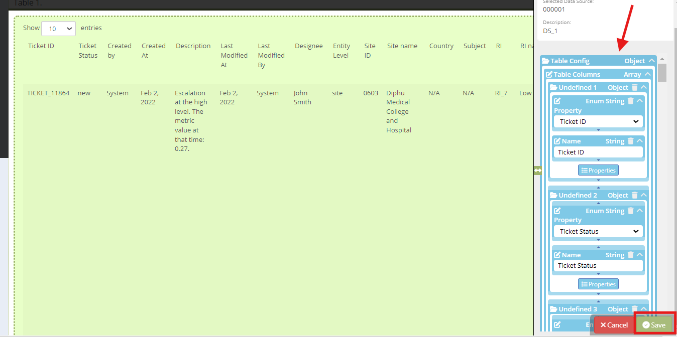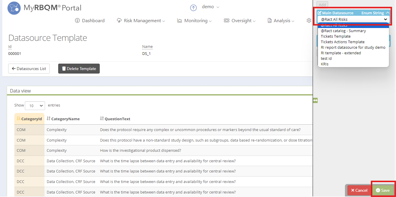 - In the right-hand editor, click Main Datasource, select one of the templates and click Save:
