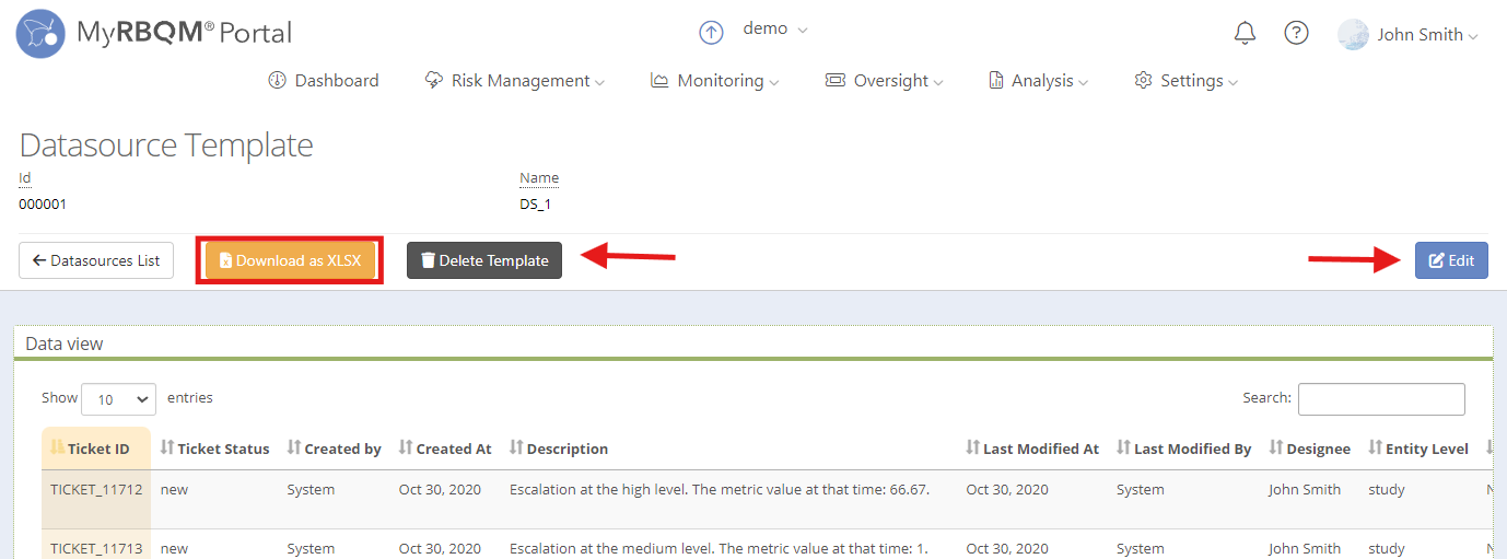 - Now it is possible to download the dataset in Excel format. It is possible to edit a datasource or delete it.