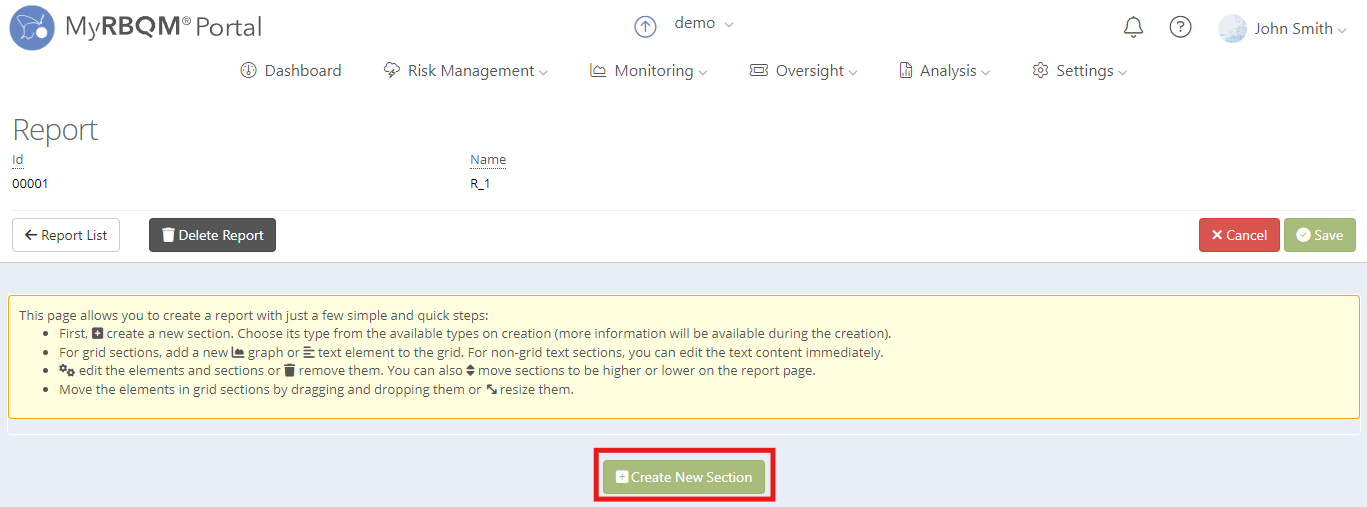 - A Grid Section allows you to add graphs, images and texts to the report while having full control over the position and size of each element.