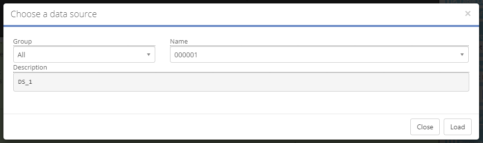 - In the right-hand editor, click Choose and select one of the existing datasources to use as the dataset for the table and click Load: